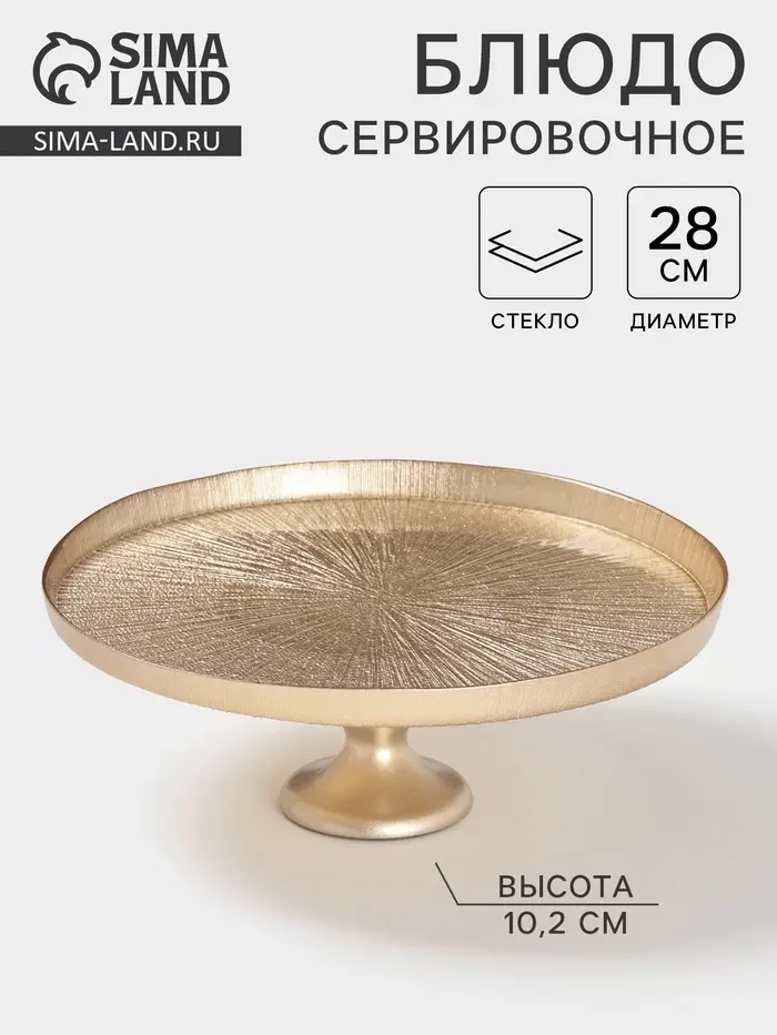 Блюдо для торта «Кувшинка», d=28 см, на ножке, стекло, золотистое
