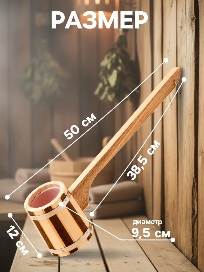 Долговременная польза: Черпак создан для тех, кто ценит практичность и долговечность. Естественные материалы в комбинации с продуманным дизайном делают его лучшим выбором для вашей бани.