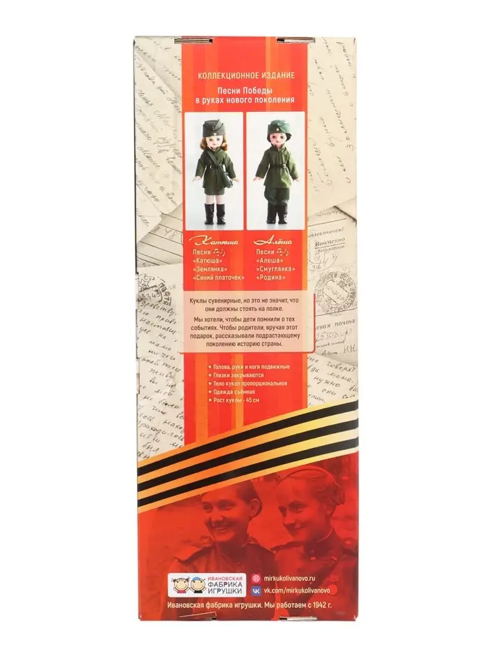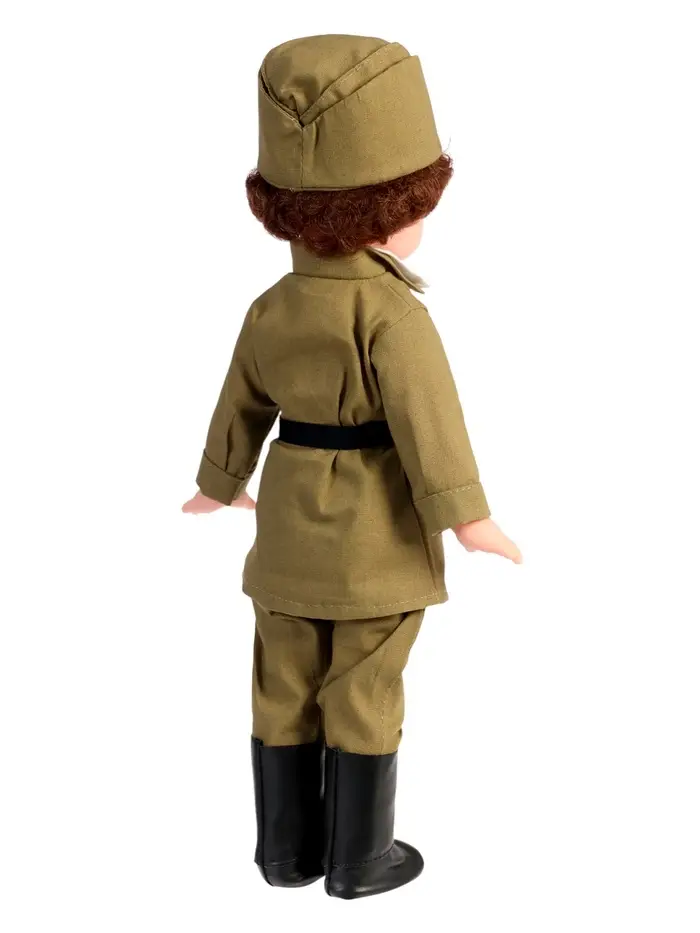 Кукла «Алёша», 45 см — реалистичная кукла в военной форме. Образ солдата помогает ребёнку разыгрывать патриотические сцены, учит уважению к истории и позволяет создавать яркие сюжетные игры.