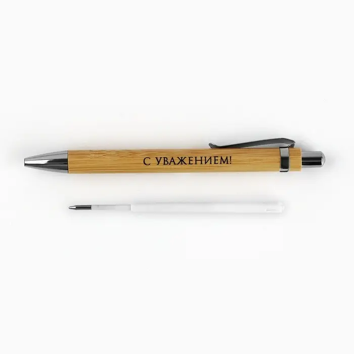 Ручка шариковая, синяя паста, автоматическая, 1 мм, бамбук, в футляре «Любимому учителю»
