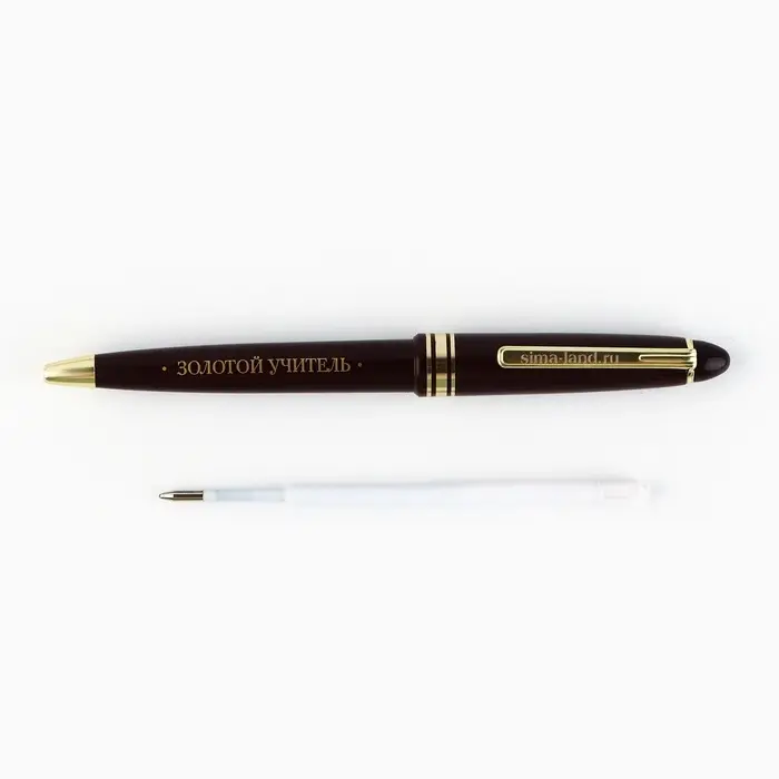 Ручка шариковая, синяя паста, 1 мм, пластик, автоматическая, в тубусе «Золотому учителю»