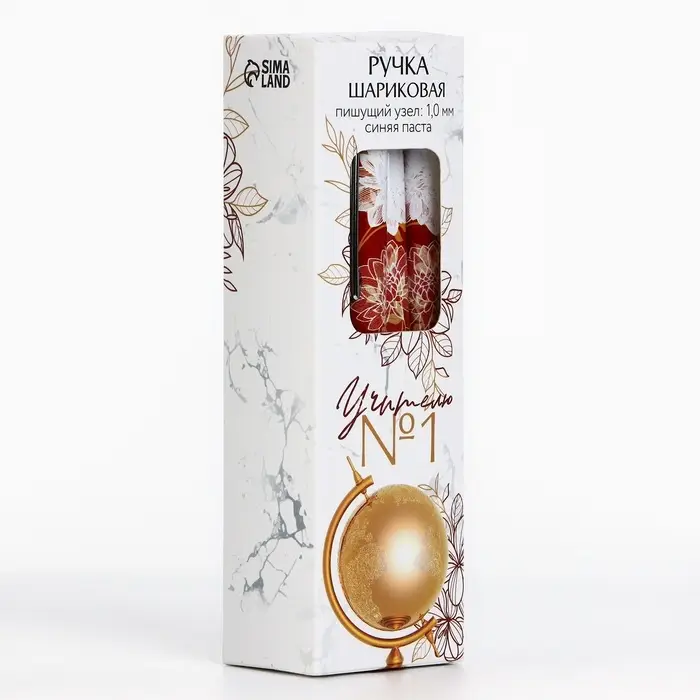 Ручка шариковая, синяя паста, 1 мм, пластик, с колпачком «Лучшему учителю в мире»