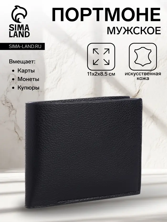 Портмоне мужское «Кайс», на магните, отдел для карт, монет, чёрное