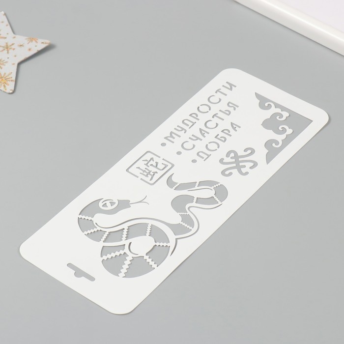 Трафарет новогодний пластиковый "Змея. Мудрости, счастья, добра", размер 10х25 см