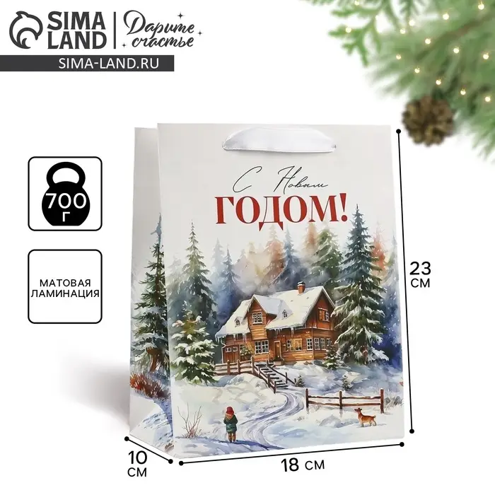 Пакет подарочный новогодний ламинированный «С Новым годом», MS 18×23×10 см