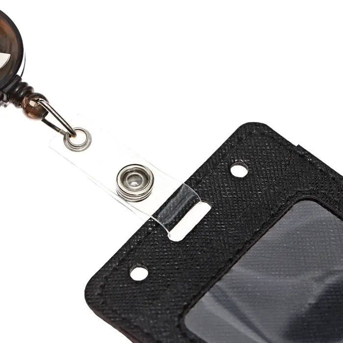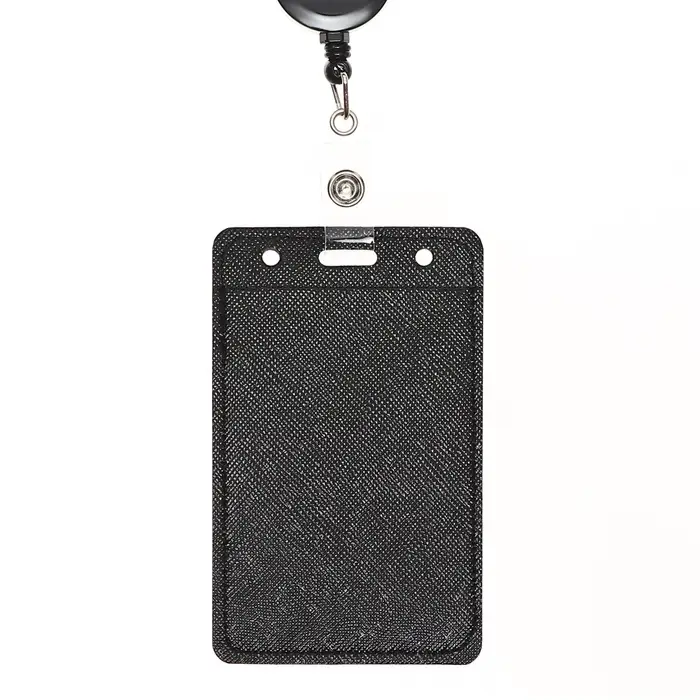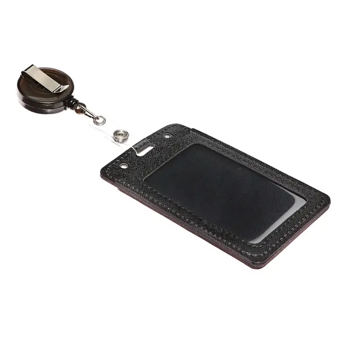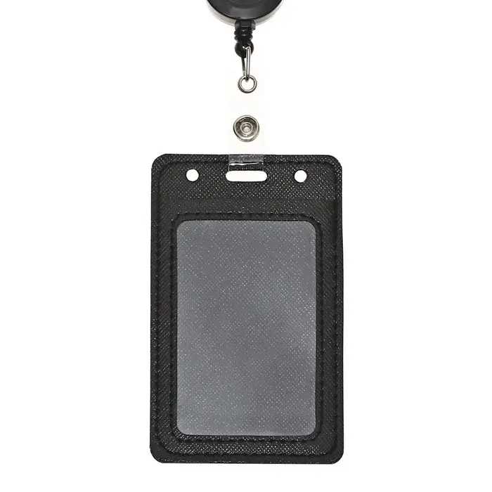 Бейдж - карман вертикальный кожзам, внешний размер 110×68 мм, внутренний размер 85×54 мм, рулетка 60 см, чёрный