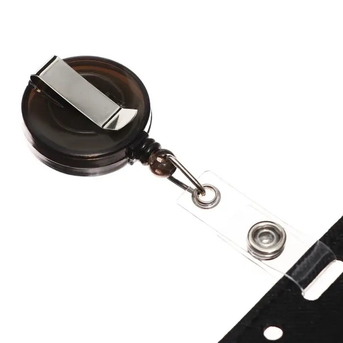 Карабин для бейджа, с держателем-рулеткой, на кнопке, чёрный