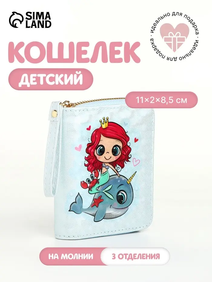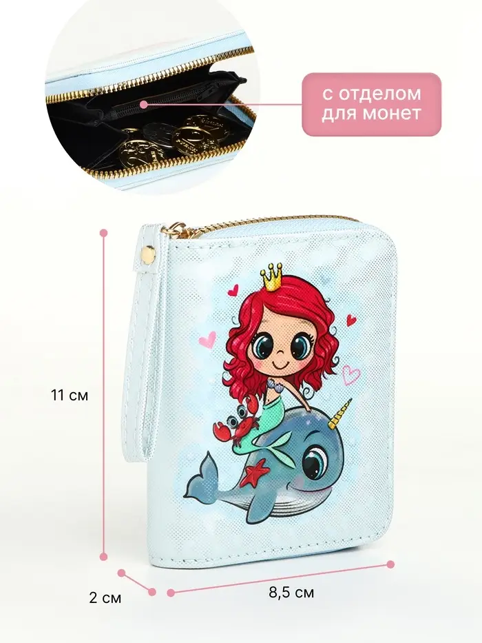 Кошелёк помогает девочке учиться самостоятельности — хранить карманные деньги и небольшие сокровища. Молния открывается плавно, а отделения удобно организованы для детских пальчиков. Сказочная русалка будет вдохновлять на мечты каждый раз, когда ребёнок достанет кошелёк.