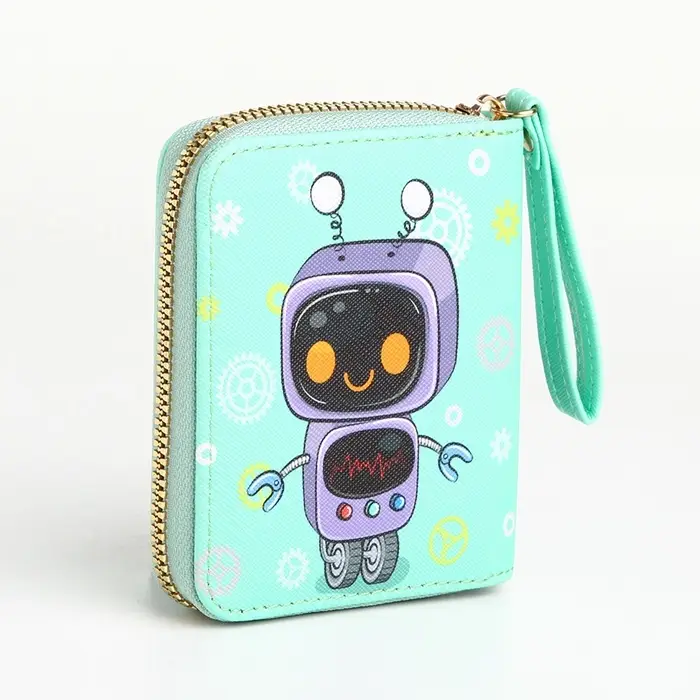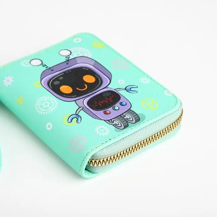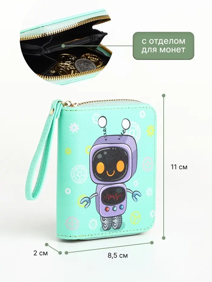 Этот салатовый кошелёк с роботом создан для тех, кто ценит практичность и яркие детали. Он станет вашим личным организатором, где у каждой мелочи есть своё безопасное место.