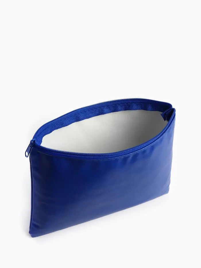 Эта плоская косметичка среднего размера — ваш надёжный спутник для порядка в сумке. Её лаконичный дизайн и универсальный синий цвет легко сочетаются с любым стилем, будь то деловая встреча или путешествие. Всё необходимое будет аккуратно разложено и защищено надёжной молнией.