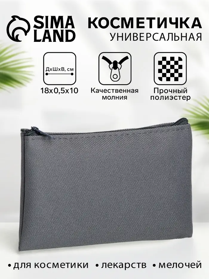 Эта плоская серая косметичка — ваш идеальный спутник для порядка в сумочке. Её тонкий профиль и лаконичный дизайн решают проблему поиска мелочей. Молния по всему периметру открывает полный обзор содержимого, а гладкий полиэстер приятен на ощупь и прост в уходе.