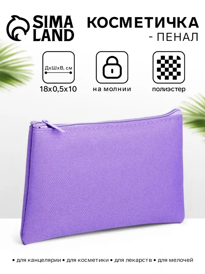 Косметичка-пенал на молнии, плоская, маленькая, сиреневая
