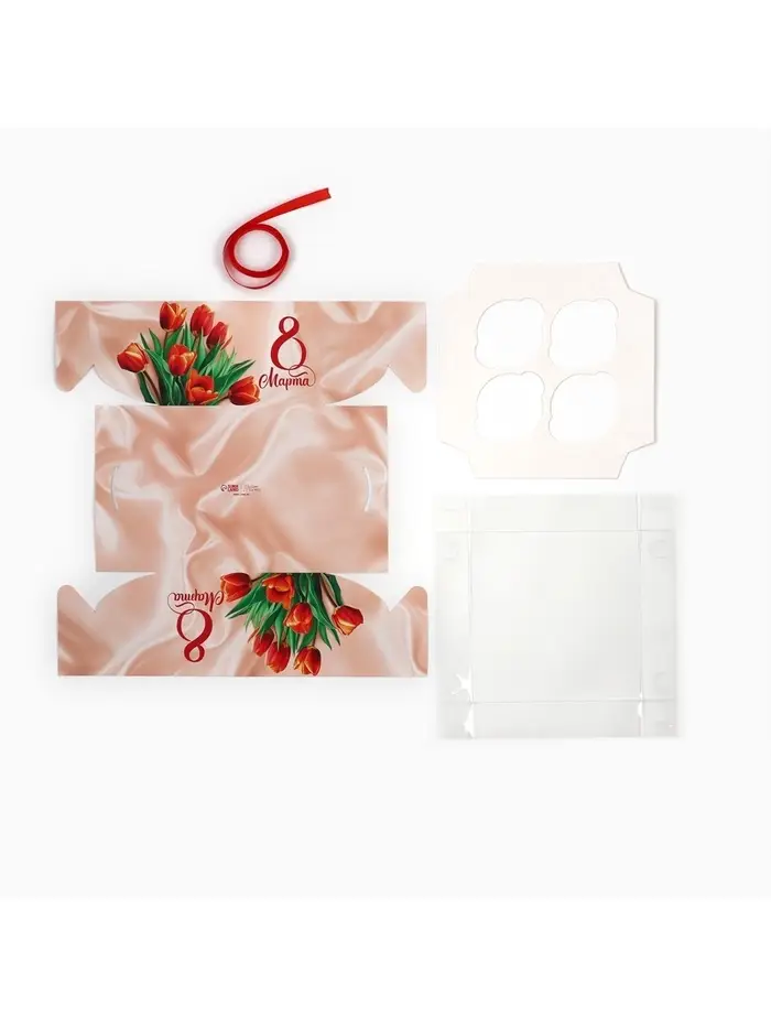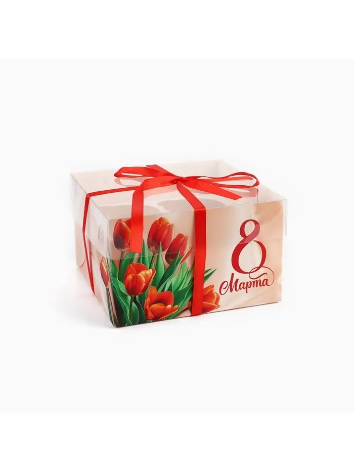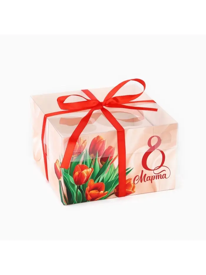 Коробка для капкейка «8 марта», 16×16×10 см