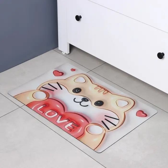 Откройте для себя радость уюта и цвета с диатомитовым ковриком, который станет прекрасным дополнением любого интерьера. Его яркий и разнообразный дизайн, вдохновленный животным миром и мультфильмами, мгновенно привнесет в вашу ванную комнату нотки веселья и оригинальности.