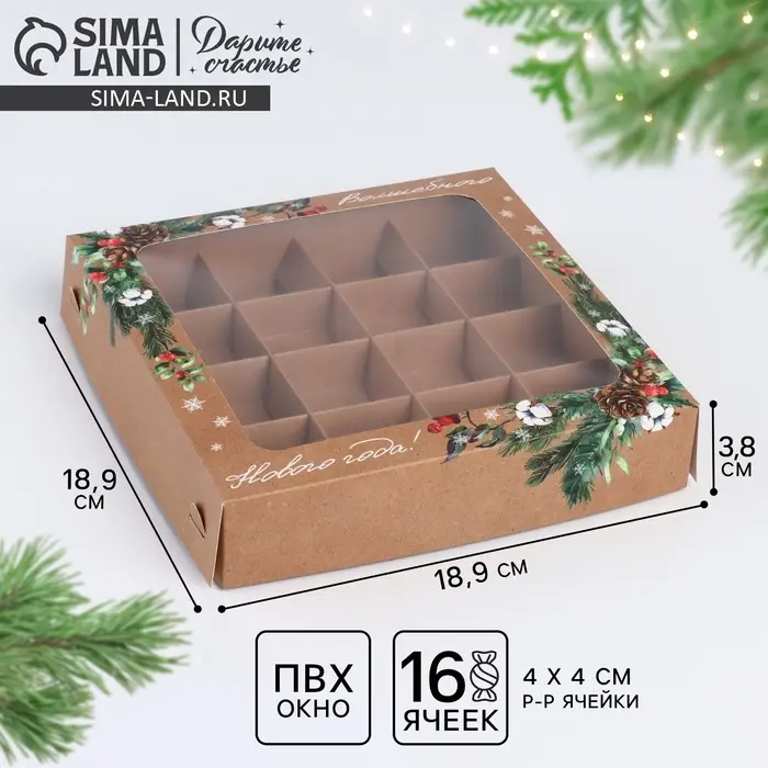 Коробка под 16 конфет «Новогодние моменты», 18.5×18.5×3.5 см