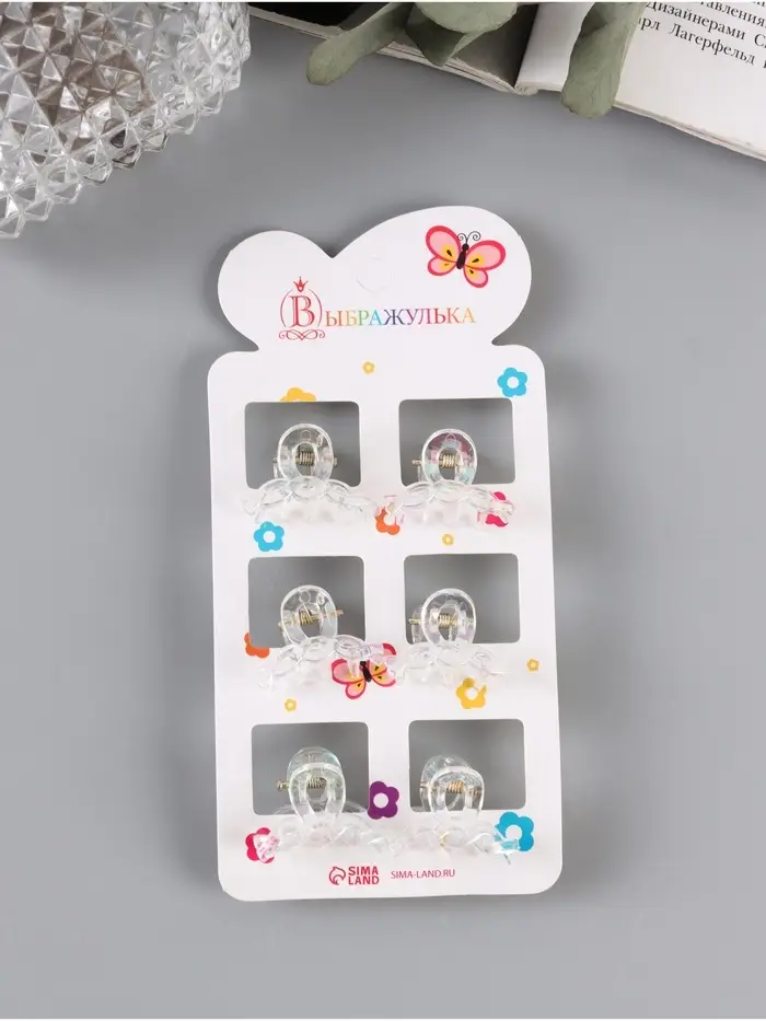 Крабики для волос Выбражулька «Аванти», петельки, 2.5 см, набор 6 шт., прозрачные