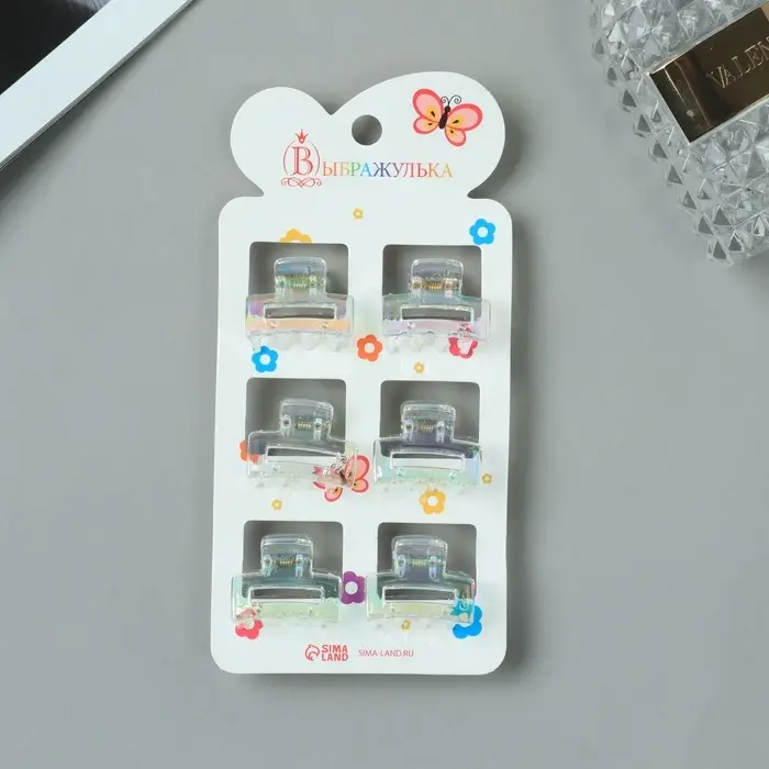 Крабики для волос Выбражулька «Аванти», петельки, 2.5 см, набор 6 шт., прозрачные