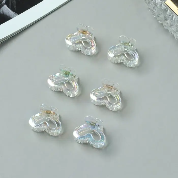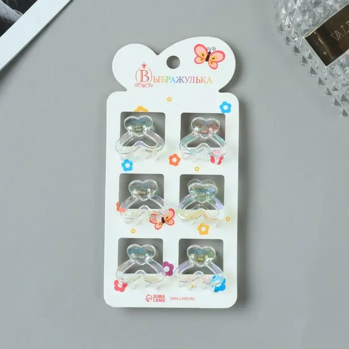 Крабики для волос Выбражулька «Аванти», сердце двойное, 2.5 см, набор 6 шт., прозрачные