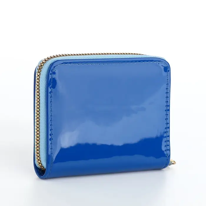 Кошелёк женский на молнии с ремешком, лакированный, синий