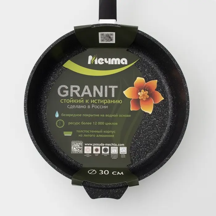 Сковорода из литого толстостенного алюминия «Мечта» станет незаменимым инструментом и надежным помощником на вашей кухне. Многофункциональная сковорода Гранит отлично подойдет для приготовления разнообразных блюд из мяса, рыбы и овощей. Благодаря термоаккумулирующим свойствам пищевого алюминия, пища на сковороде Гранит не пригорает, а томится, а благодаря новейшей формуле сверхпрочного антипригарного покрытия готовить можно при минимальном количестве масла не переживая за то что пища может пригореть. На посуде ТМ «Мечта» можно жарить, тушить и варить без потерь вкусовых и полезных качеств продуктов. Сковорода гранит из литого высококачественного пищевого алюминия «Мечта» станет незаменимым инструментом и надежным помощником на вашей кухне.