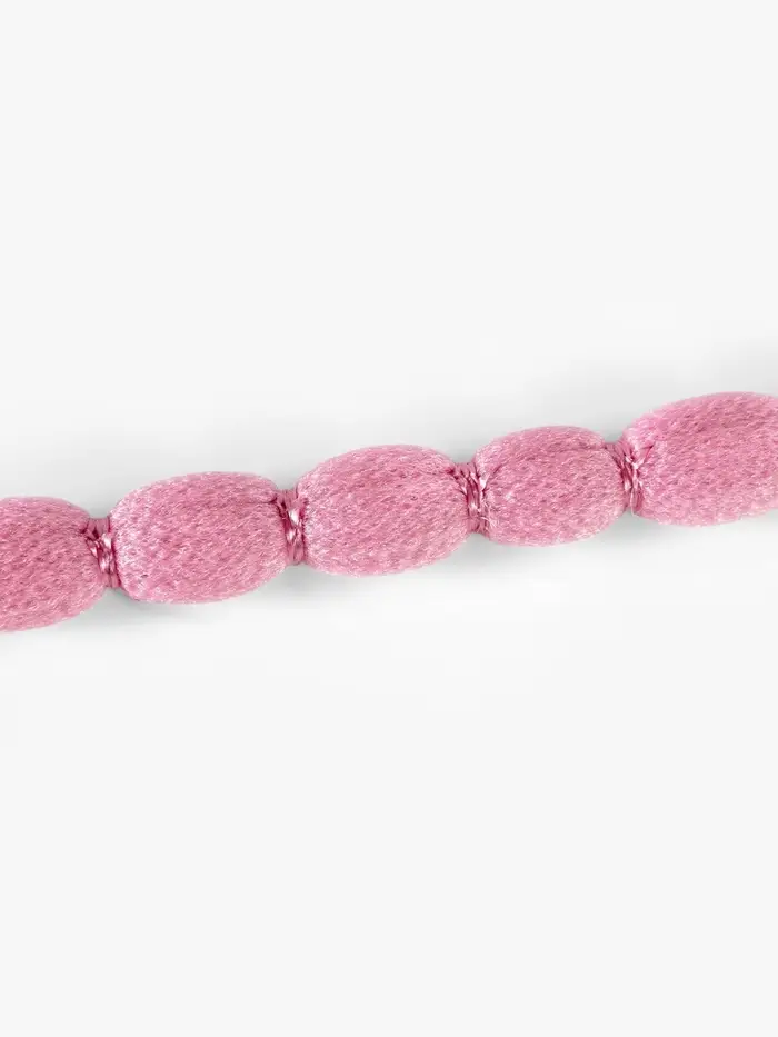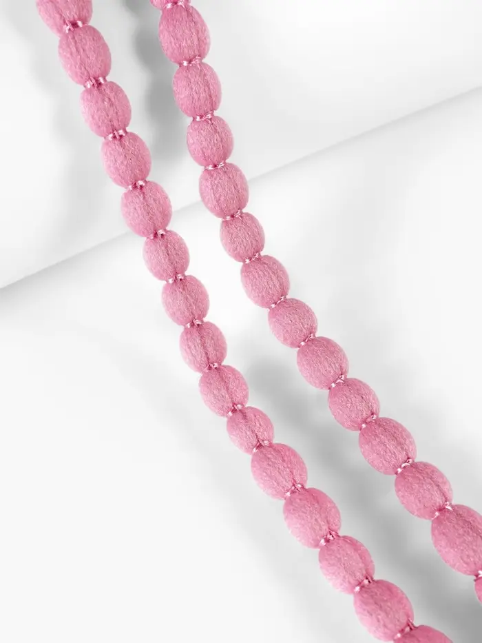 Очаровательная пудровая тесьма с пушистыми помпонами станет изюминкой ваших творческих проектов. Её нежный розовый оттенок придаст любому изделию особый шарм и теплоту, создавая ощущение уюта и комфорта.