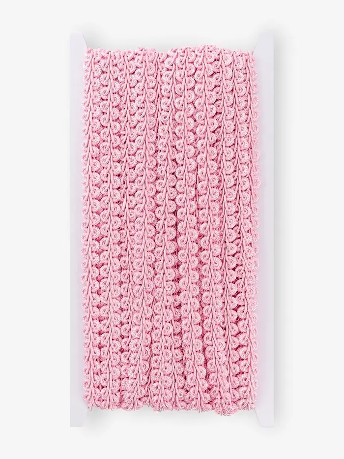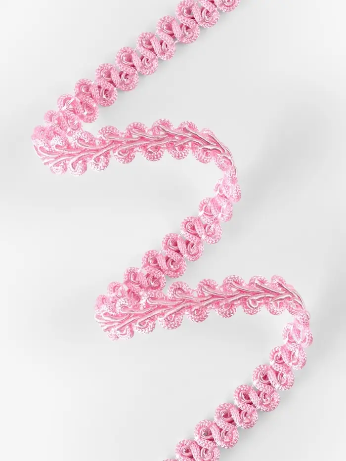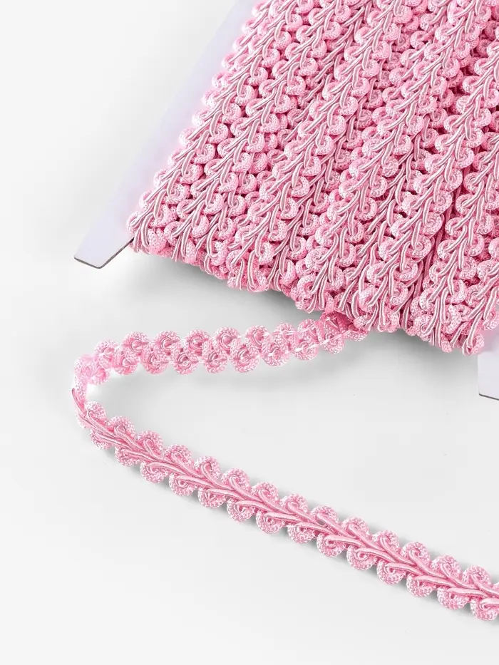 Розовая тесьма в стиле "шанель" шириной 12 мм придаст нежный французский шарм вашим творческим проектам. Эта декоративная лента с узнаваемым переплетением идеально подходит для оформления одежды, аксессуаров и предметов интерьера.