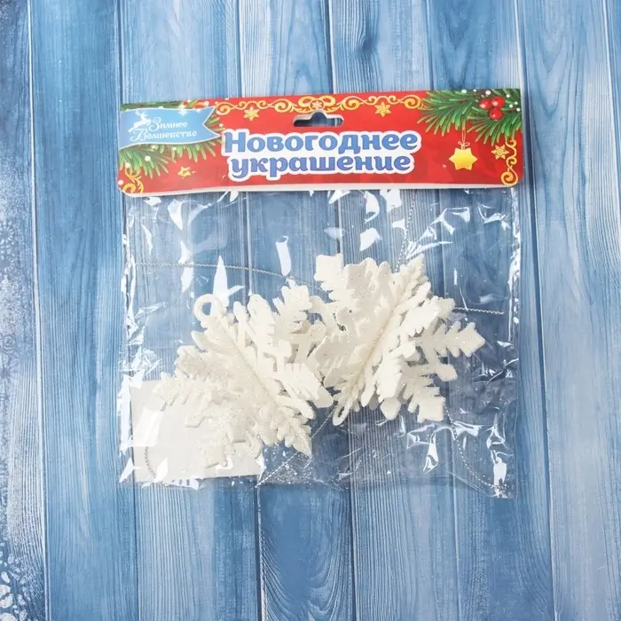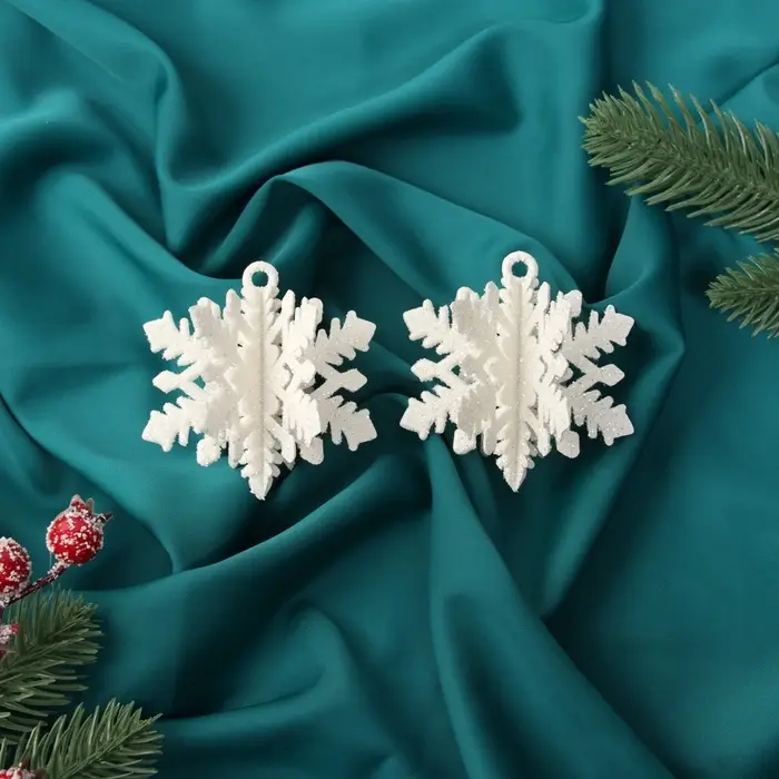 Ёлочные игрушки набор 2 шт. «Зимнее волшебство. Снежинка объёмная», 7×6 см, белый
