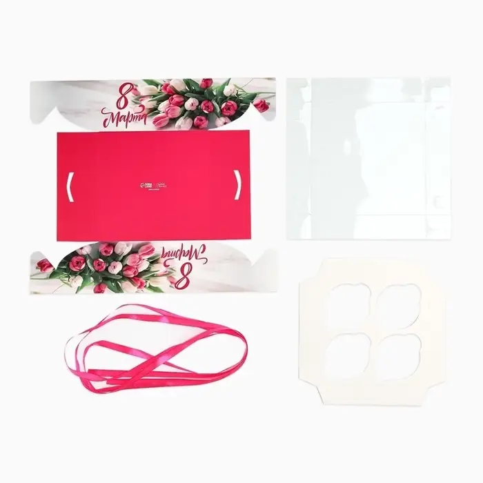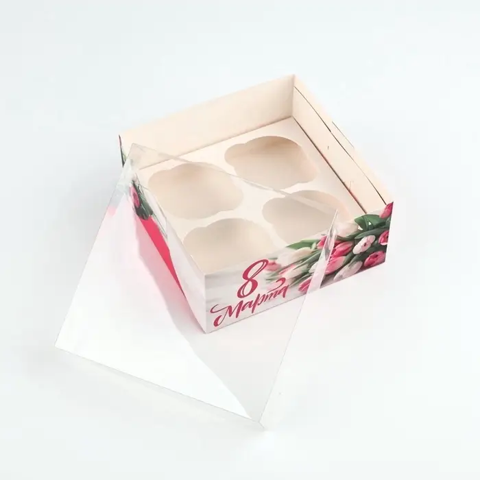 Коробка для капкейка «8 марта», 16×16×7.5 см
