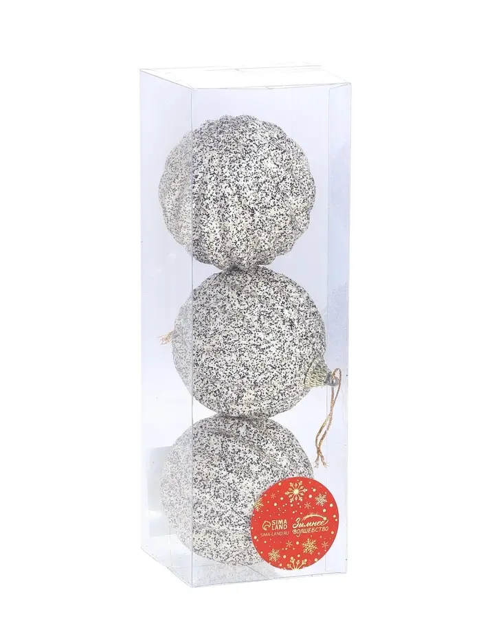 Набор из трёх серебристых ёлочных шаров диаметром 8 см представляет собой классическое украшение с оттенком шебби-шика и советской эстетики. Пластиковые шары отличаются однотонным дизайном и подходят для создания традиционного новогоднего образа.