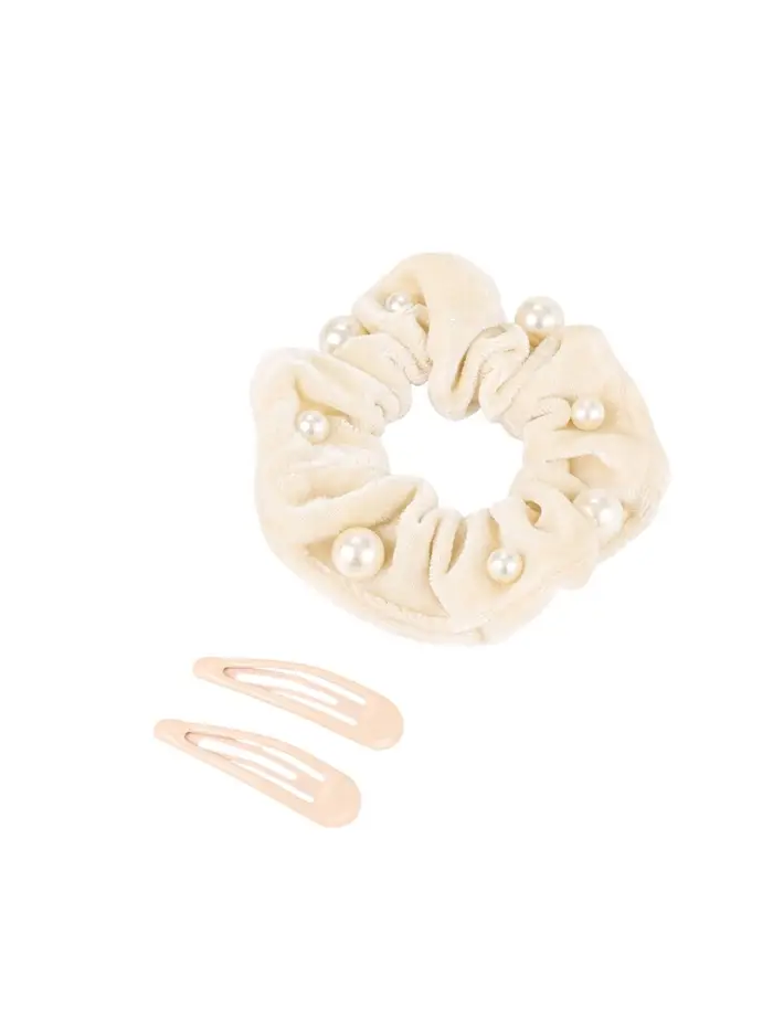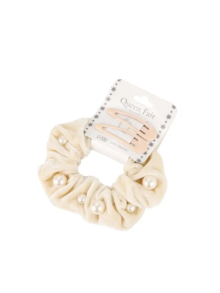 Набор для волос «Глория грация», резинка 7 см, 2 заколки 5 см, бежевый