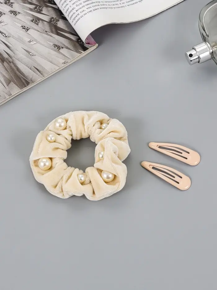 - Три предмета в наборе: В комплекте — резинка для волос и две заколки. Этого достаточно для создания множества вариантов укладок: от строгого пучка до небрежного, но продуманного хвоста.