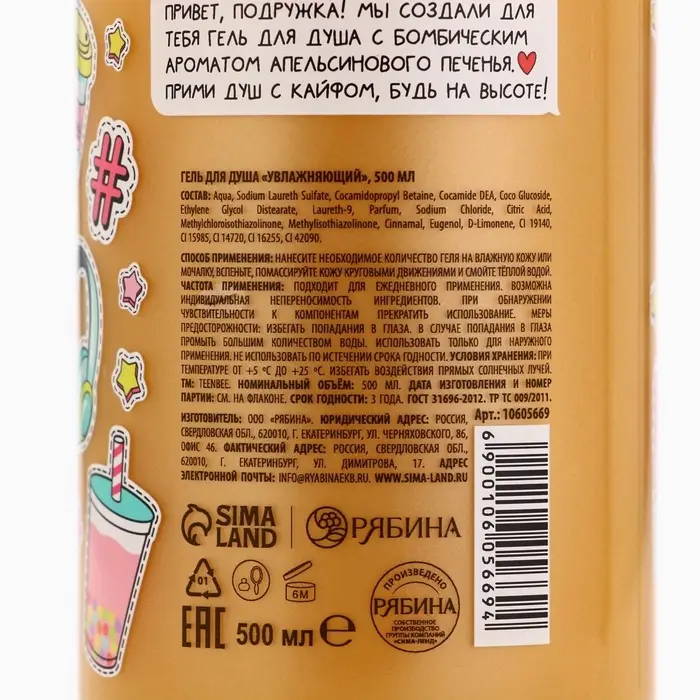 Гель для душа женский, 500 мл, аромат апельсинового печенья, TeenBee
