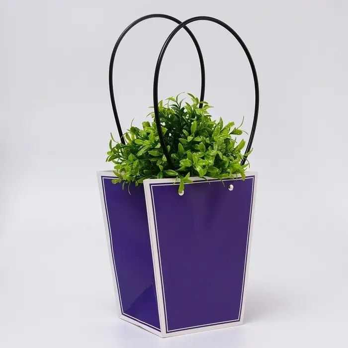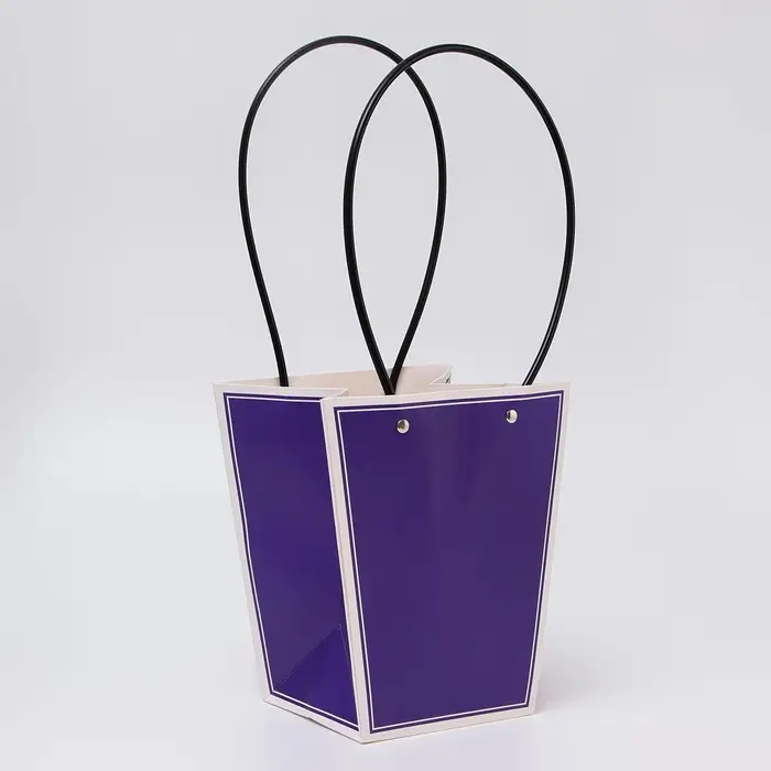 Сумка для цветов лиловая влагостойкая, 12×12 - 8×8 - 12.5 см