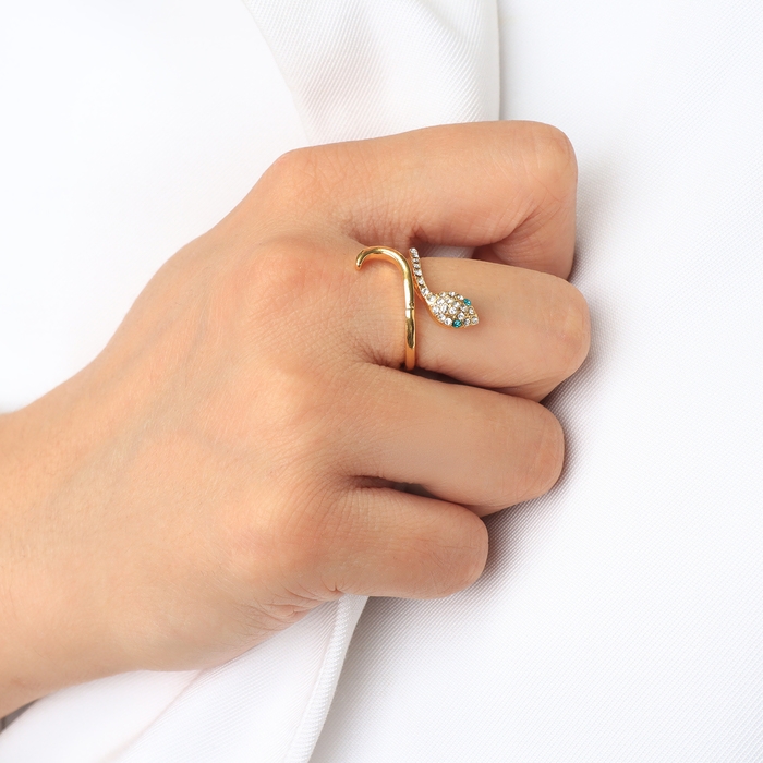 Новый год! Символ года 2025! Кольцо «Змея» миниатюрная, цвет бело-зелёный в золоте, безразмерное