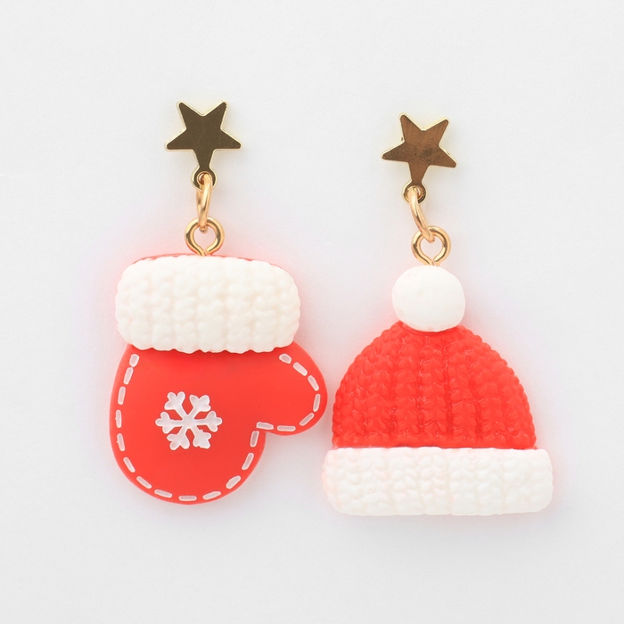 Новый год! Серьги «Новогодние» шапка-звезда, варежка, цвет бело-красный в золоте