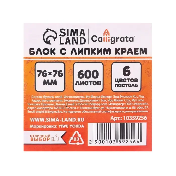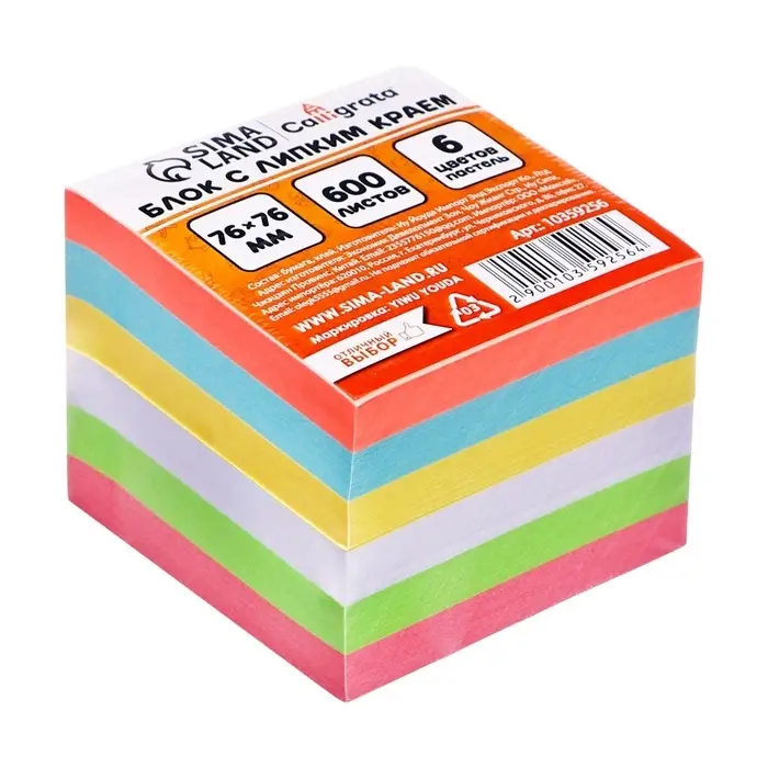 - Блок с липким краем, размер 76x76 мм, 600 листов.