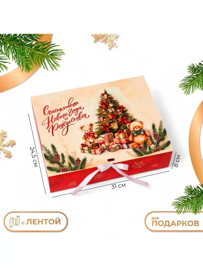 Коробка украшена изысканным новогодним дизайном. Этот дизайн создает ощущение тепла и радости, добавляя к вашему подарку праздничное настроение.