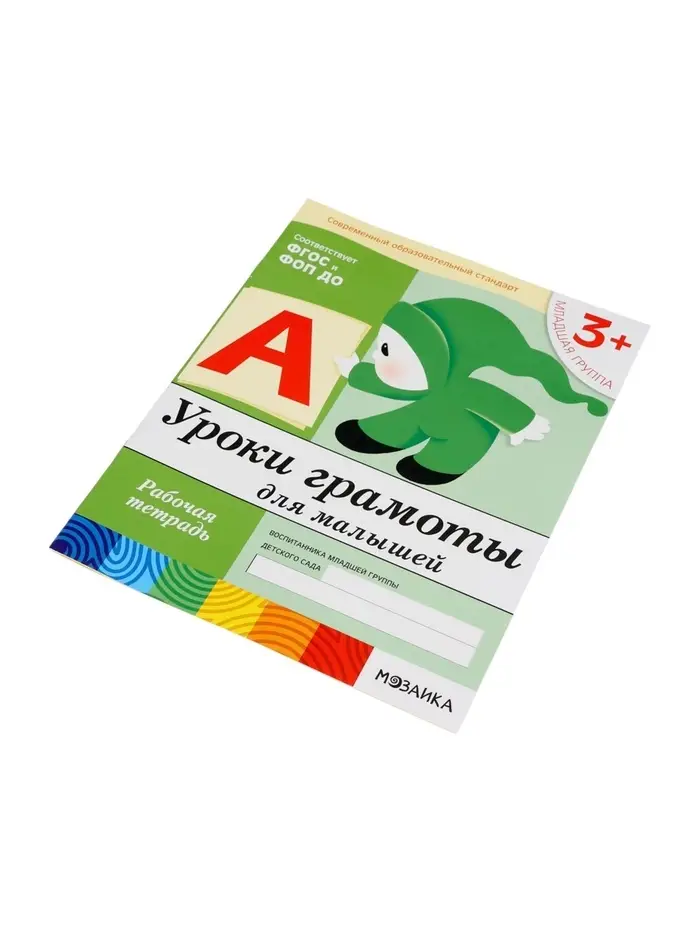 - Рабочая тетрадь «Уроки грамоты для малышей 3+», которая поможет ребенку научиться вслушиваться в слова, выделять звуки и правильно их произносить.