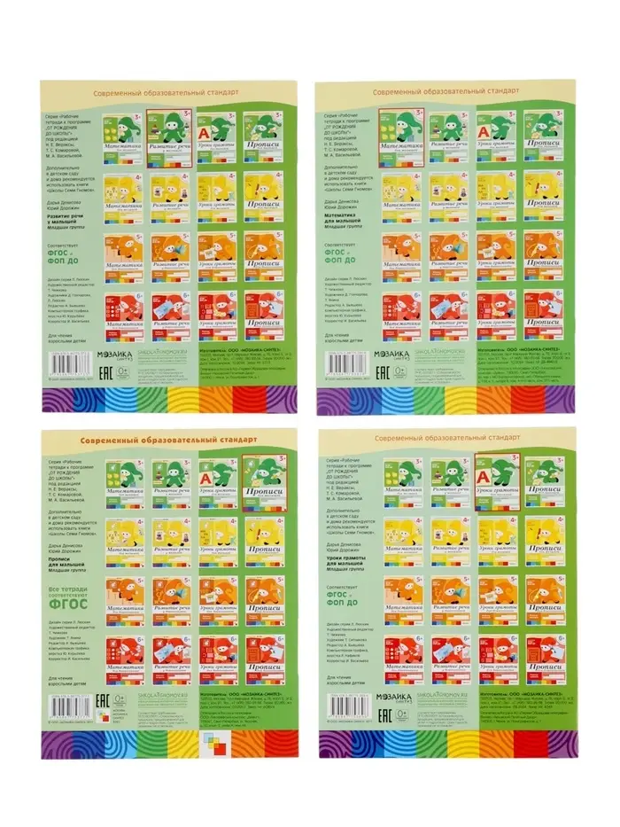 Комплект из 4 рабочих тетрадей с увлекательными заданиями предназначен для занятий в детском саду и дома с детьми от 3 до 4 лет. Входящие в его состав рабочие тетради соответствуют ФГОС ДО и являются частью УМК «От рождения до школы».