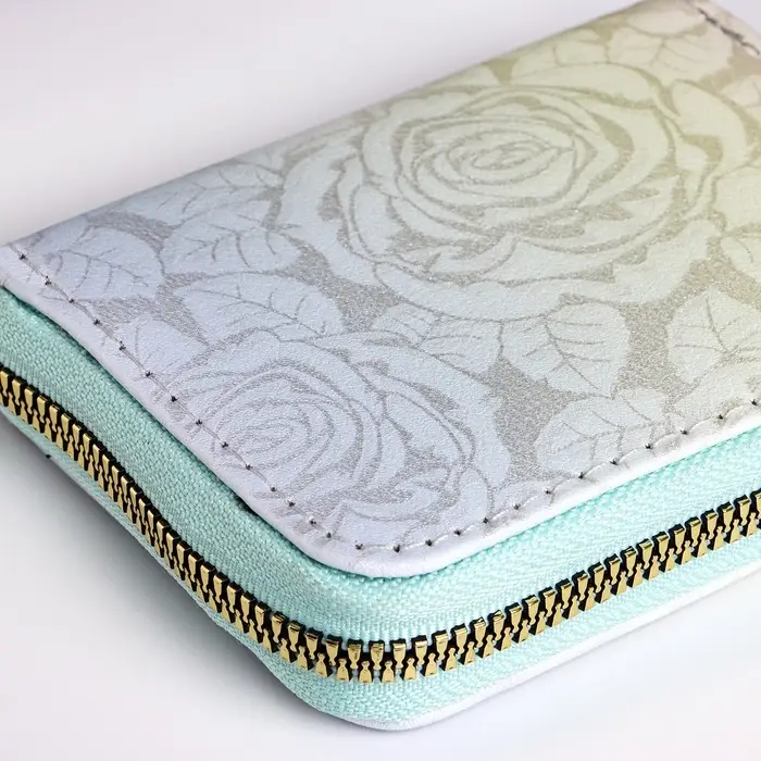 Кошелёк помогает быстро находить нужное: для карточек, денег и мелочи предусмотрены свои места. Цветочный рисунок в переливающихся тонах добавляет образу лёгкости и индивидуальности. Это выбор для тех, кто ценит в аксессуарах функциональность, выраженную через эстетику.