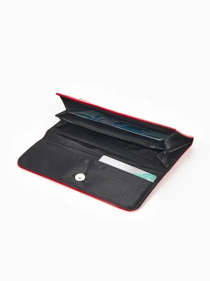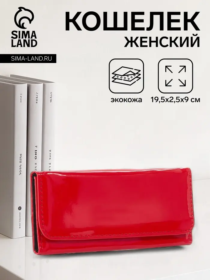 Кошелёк женский на магните, 19.5×2.5×9 см, лаковый, красный