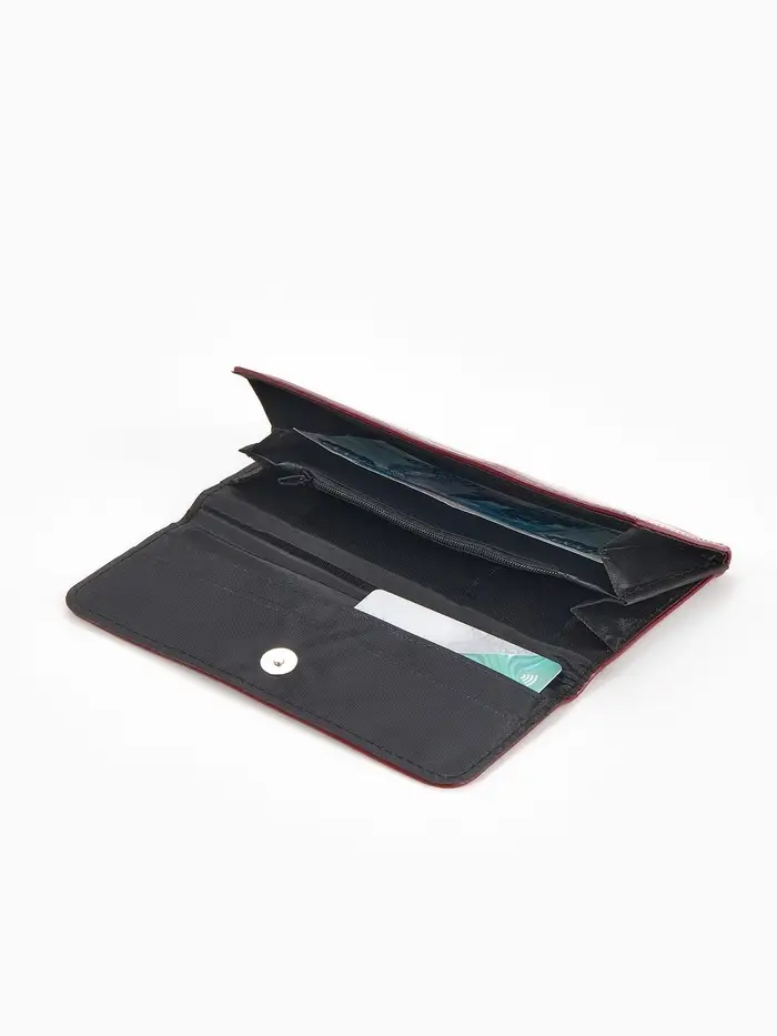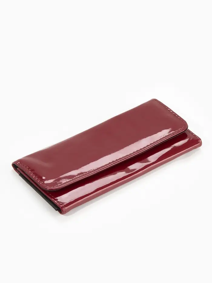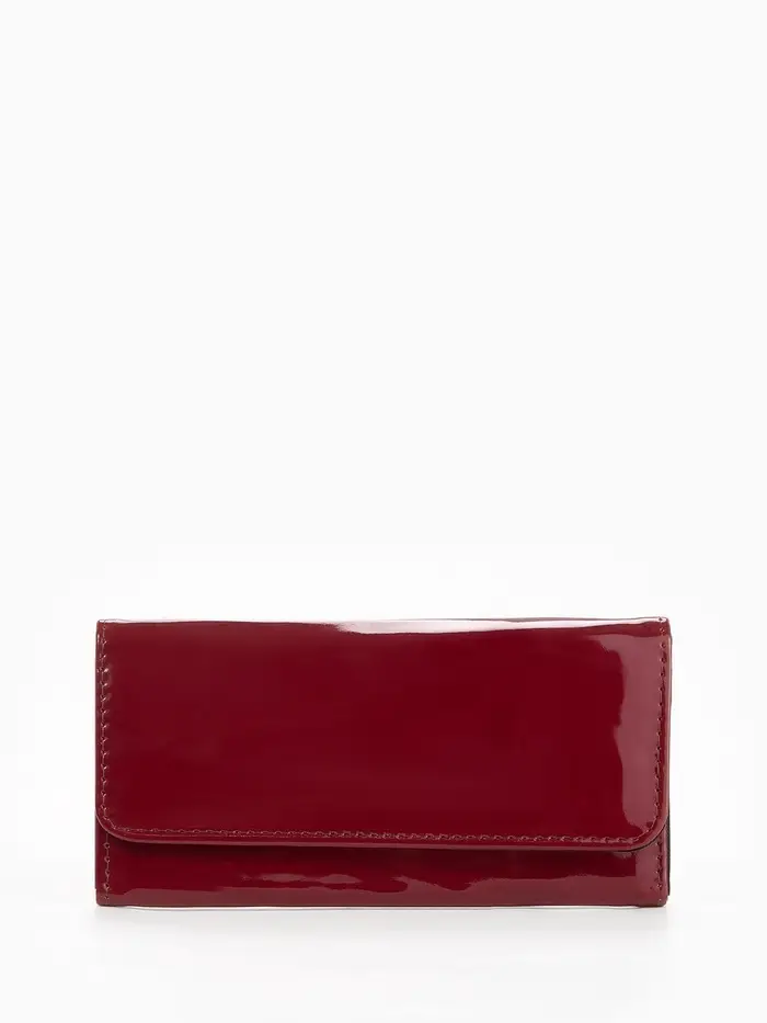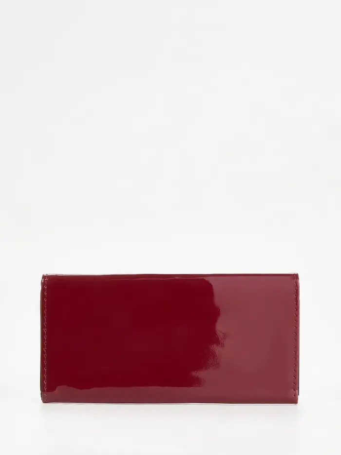 Этот бордовый кошелёк с лаковой поверхностью создаёт элегантное пространство для организации финансовых инструментов. Его насыщенный цвет и классический дизайн подходят для делового и повседневного гардероба.