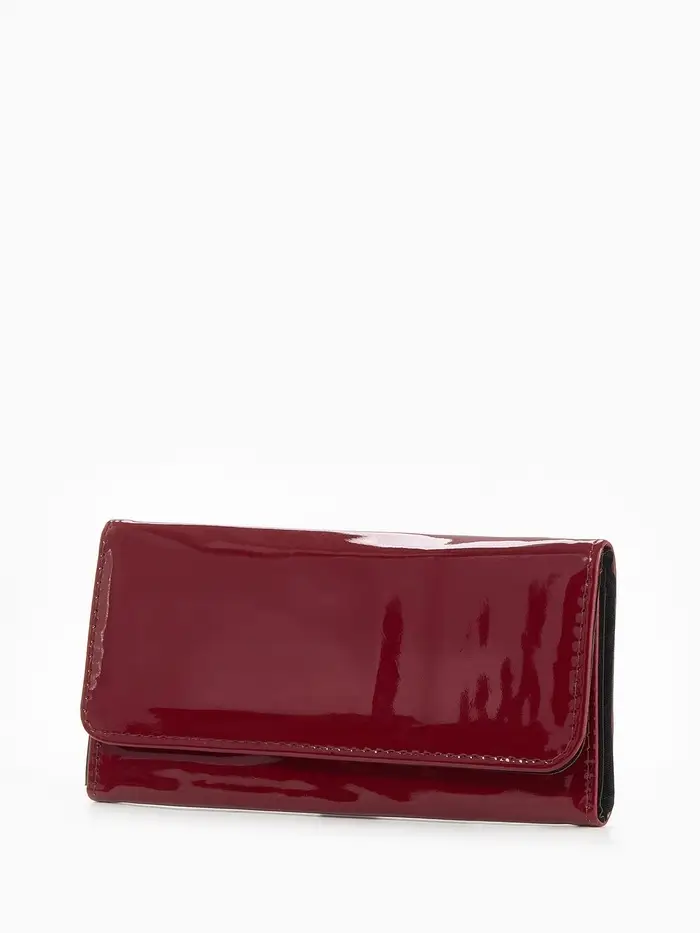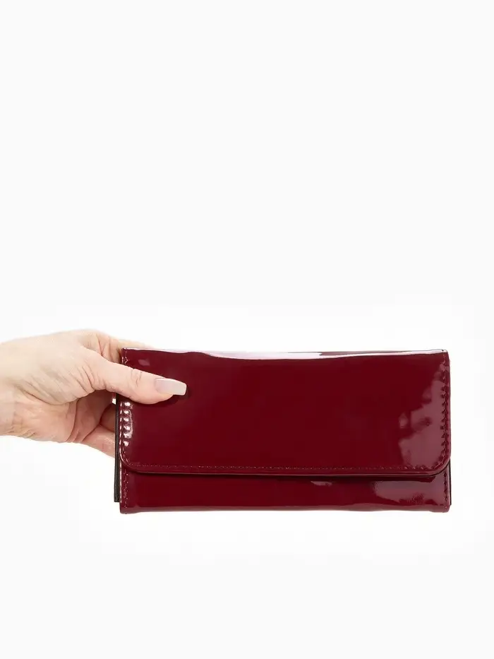 Кошелёк женский на магните, 19.5×2.5×9 см, лаковый, бордовый