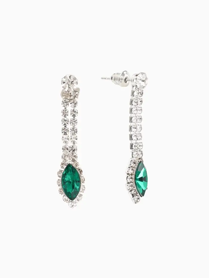 Набор 2 предмета: серьги, колье «Листопад», ромб, изумрудно-белый в серебре, 45 см
