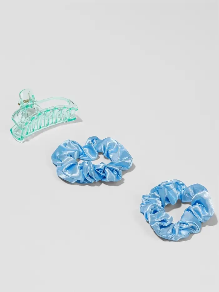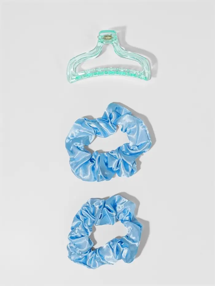 В комплект входят: атласный ободок для локонов, 2 резинки в цвет комплекта, крабик для фиксации.