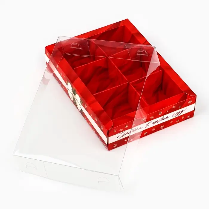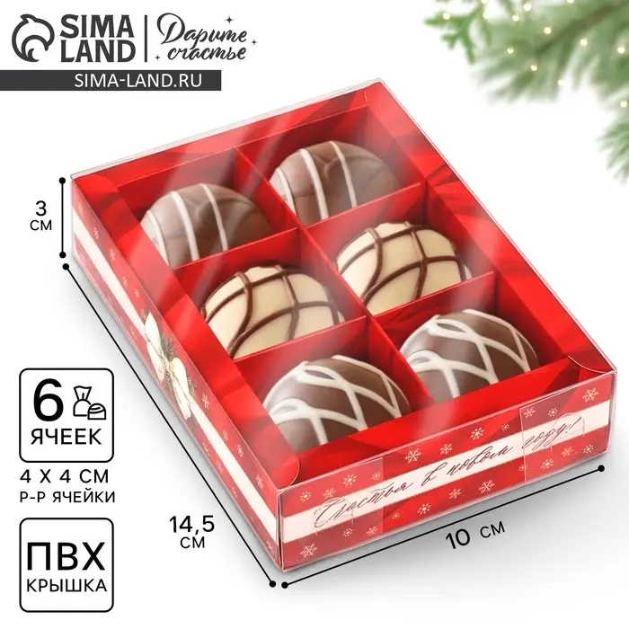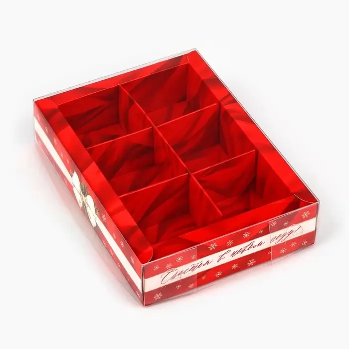 Коробка под 6 конфет с ячейками «Новогодний бант», 10×14.5×3 см