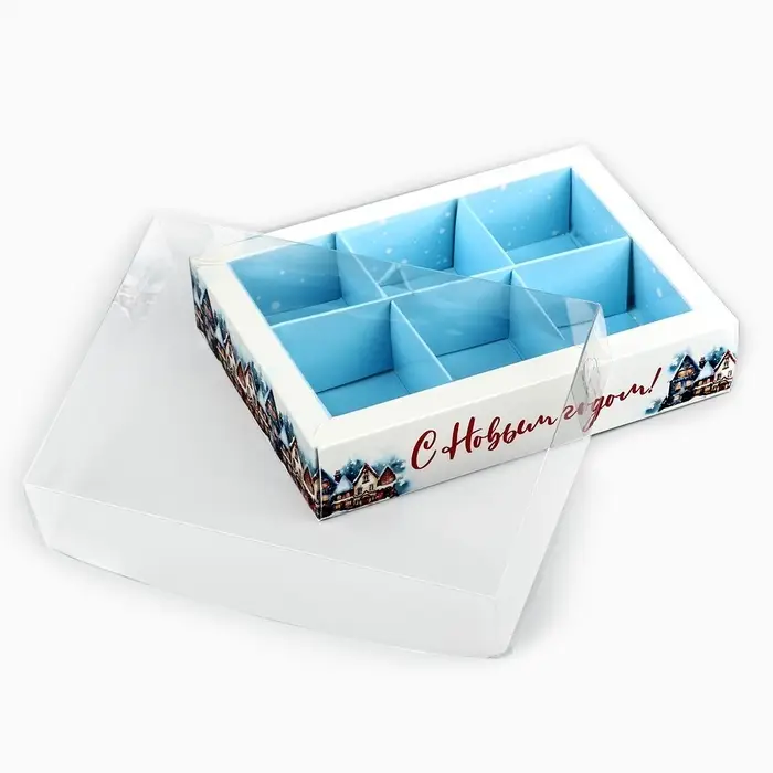 Коробка под 6 конфет новогодняя с ячейками «Снежный городок», 10×14.5×3 см