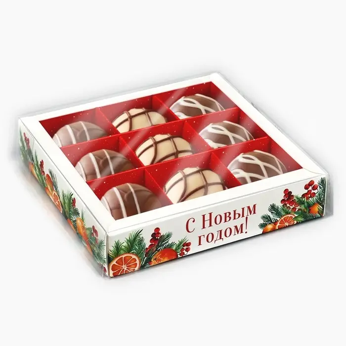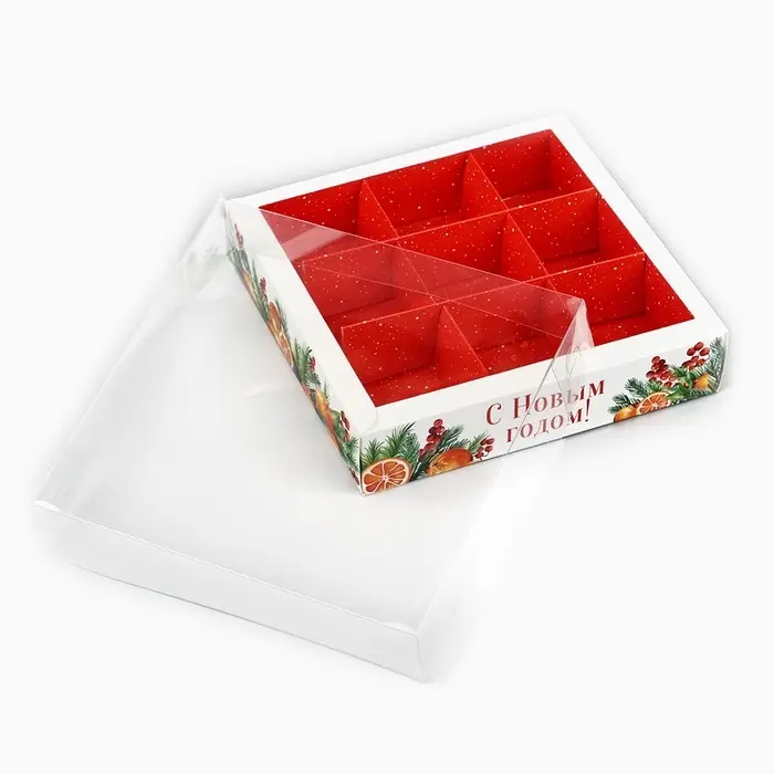 Коробка под 9 конфет новогодняя с ячейками «Аромат праздника», 14.5×14.5×3 см