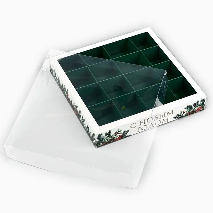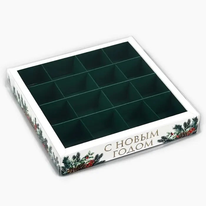 Коробка под 16 конфет с ячейками «Новогодняя ботаника», 19×19×3 см