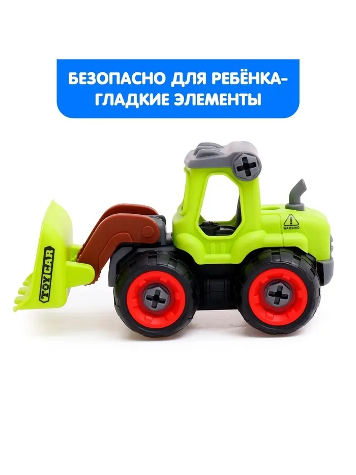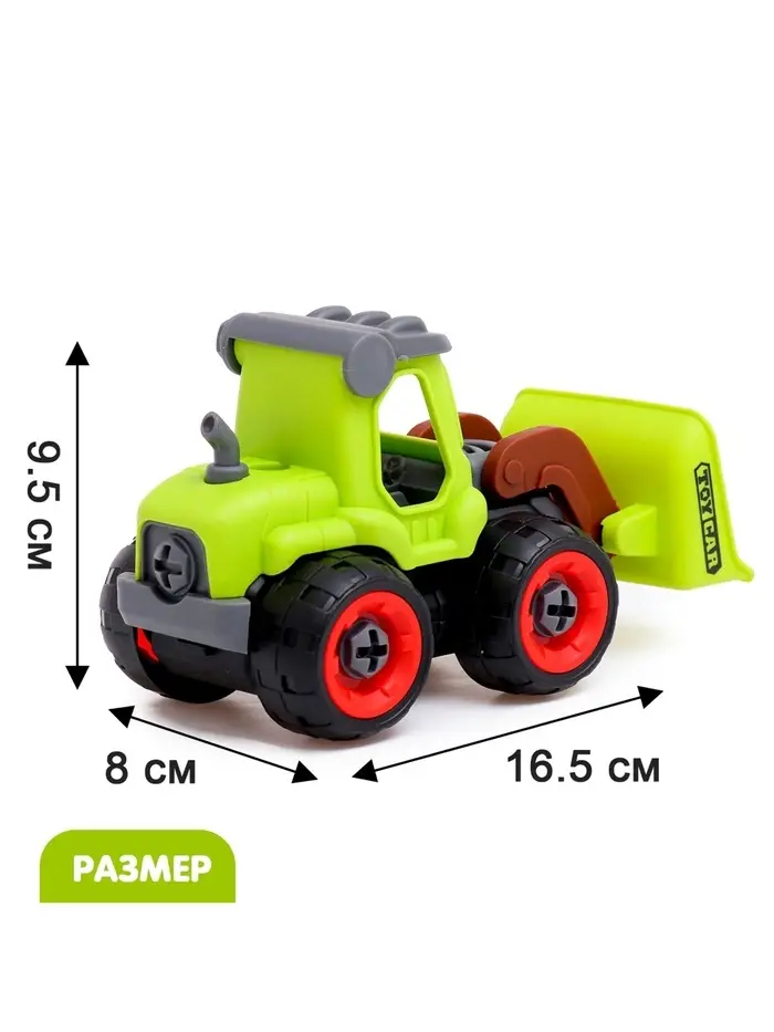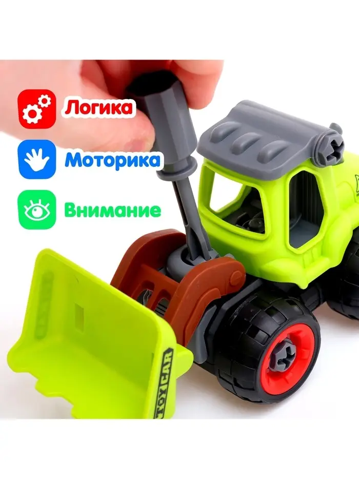 Винтовой конструктор «Фермерский погрузчик» — это увлекательная и яркая игрушка, которая обязательно порадует ребёнка! Ведь малыш самостоятельно соберёт её с помощью инструментов, имеющихся в наборе. Ребёнок получит необходимые бытовые знания, научится закручивать шурупы, болты, шестерёнки, пуговки, а также придумывать новые конструкции.